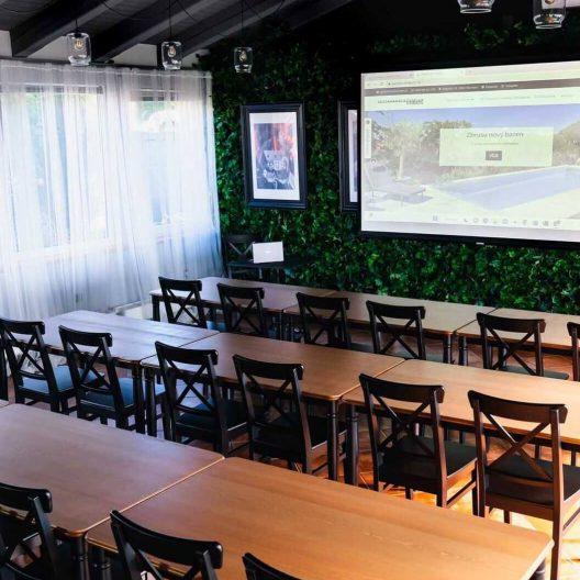 Architekt Ing. Luděk Skácel navrhl moderní, přesto harmonický interiér, jenž kombinuje přírodní materiály, jako je dřevo a kámen, a nabízí tak hostům útulné a zároveň elegantní prostředí. U nás si můžete vychutnat krásu výhledu na město a hradní zahrady, nebo se osvěžit v našem jedinečném slaném přelivovém bazénu, který je skvostem klidné části města.